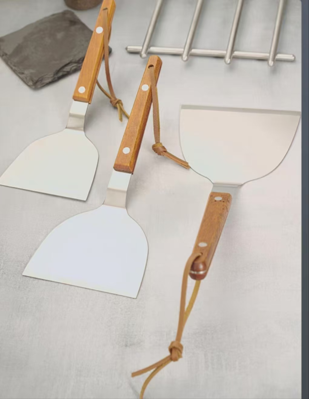 S/S TEPPANYAKI TURNER W/ WOODEN HANDLE quantity