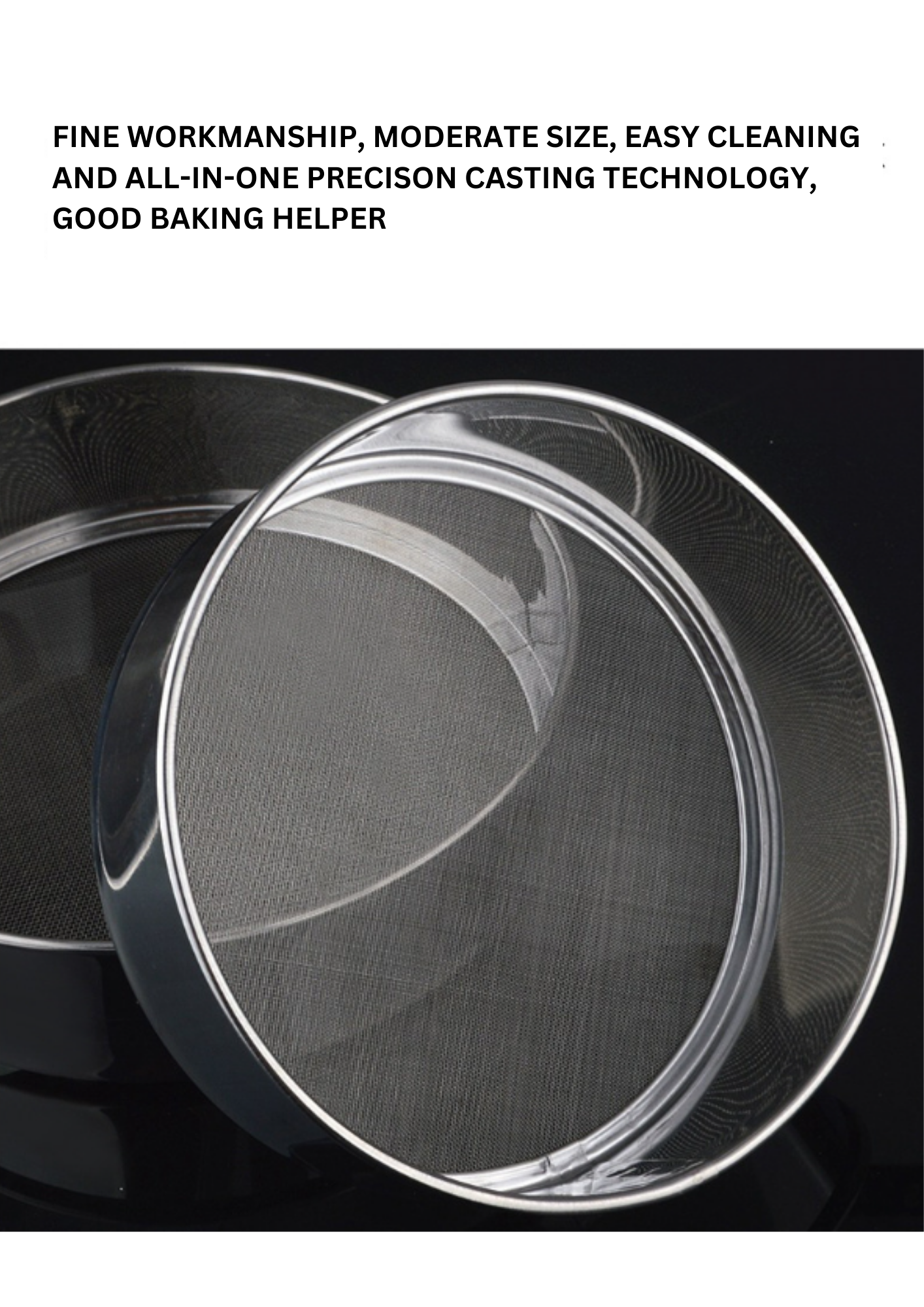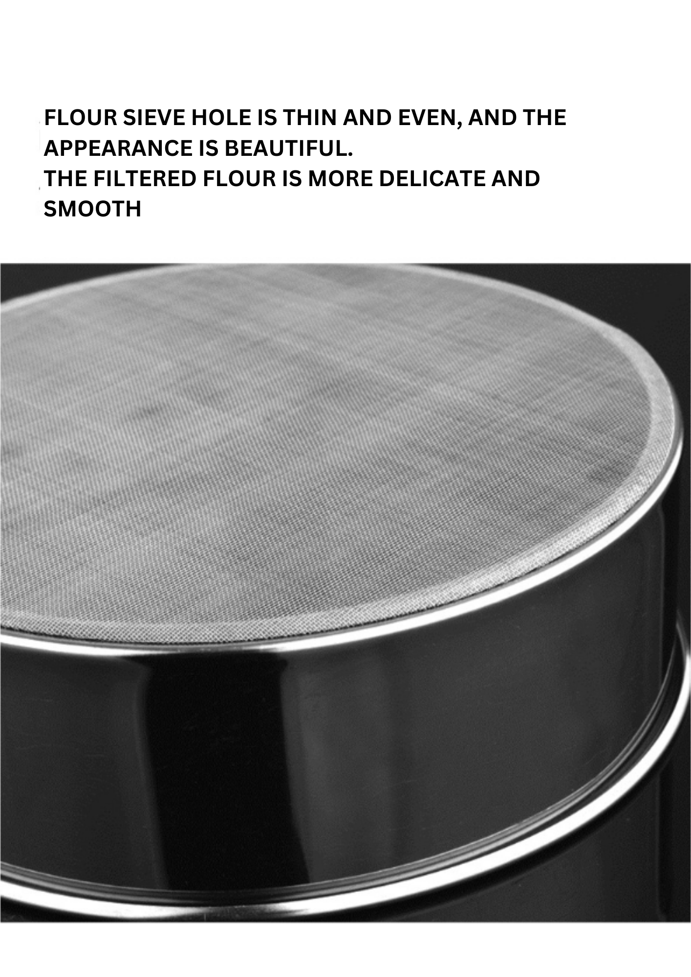 Transform your baking experience with our top-of-the-line flour sieve, designed to elevate your culinary creations. Whether you’re an avid baker or just getting started, this essential tool ensures that your flour is evenly sifted for the lightest, most delicate results. Our flour sieve features a finely mesh screen that efficiently removes lumps and aerates your flour, resulting in smoother batter and dough. The durable construction, crafted from high-quality stainless steel, guarantees long-lasting performance and easy maintenance. The ergonomic handle provides a comfortable grip and precise control, making the sifting process effortless. With its generous size, our sieve is perfect for handling large quantities of flour, sugar, or other dry ingredients, and the convenient hanging loop ensures easy storage. Designed to be dishwasher-safe, it offers hassle-free cleanup, so you can spend more time enjoying your baked goods and less time in the kitchen.